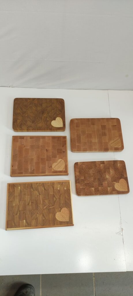 Materiál: dub, akát, buk (ošetřeno přírodním olejem na dřevo – pro styk s potravinami)