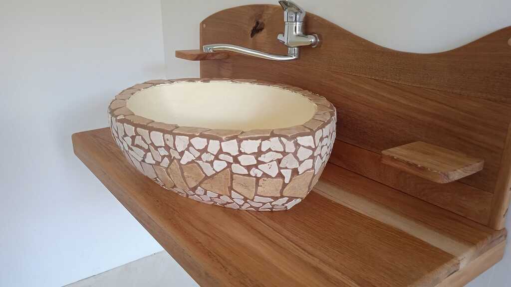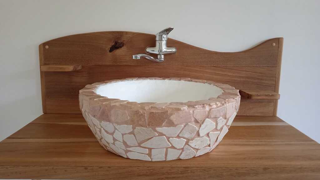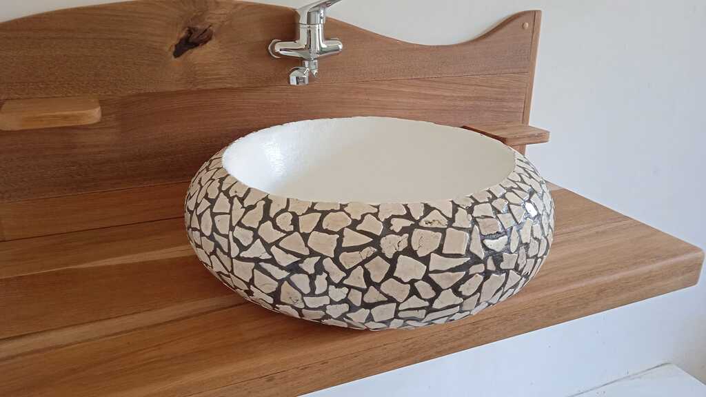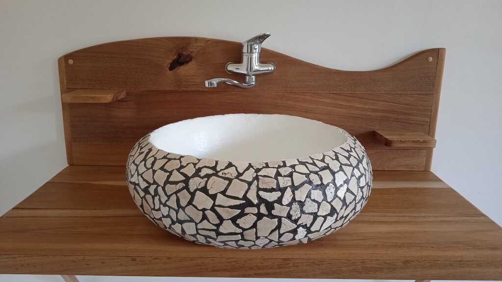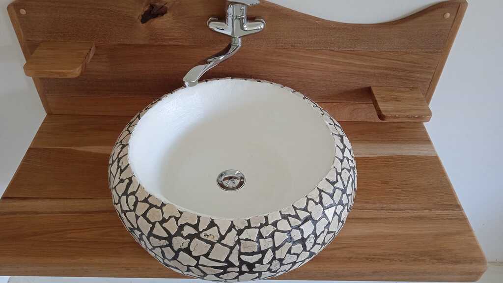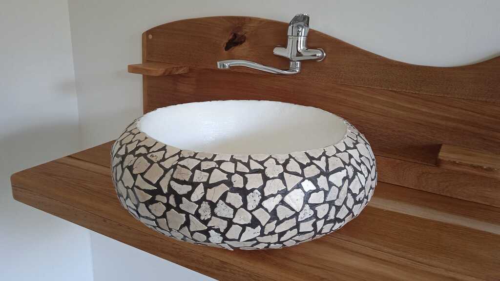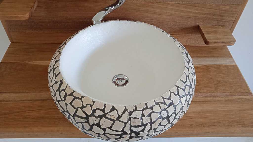 Jedinečnost: Každé umyvadlo je originál, díky ručnímu zpracování a unikátnímu uspořádání mozaiky.