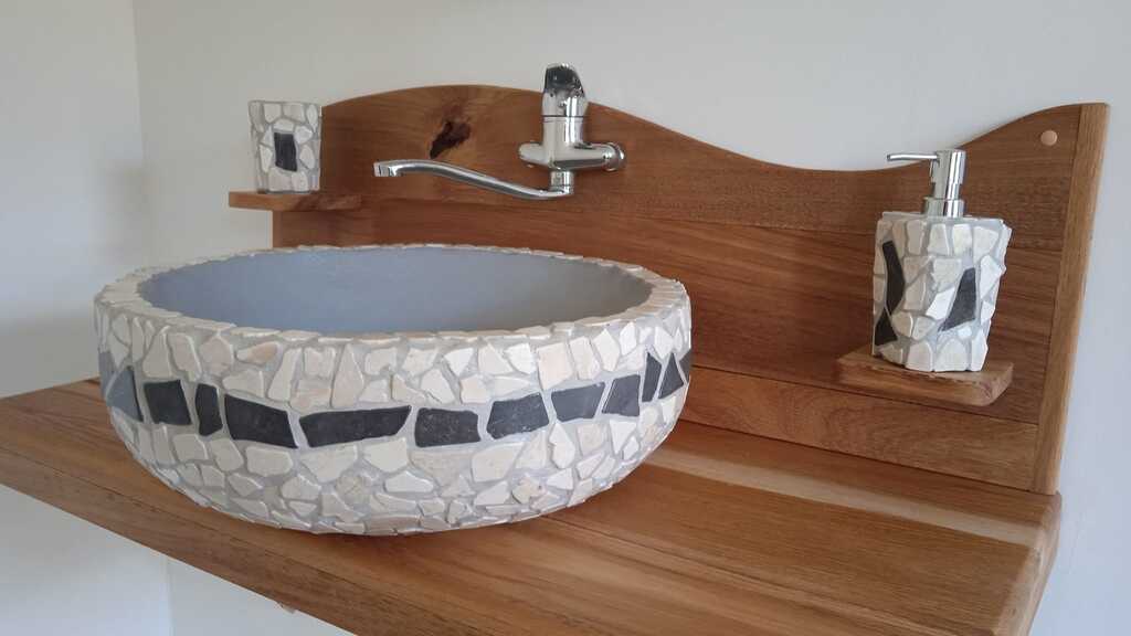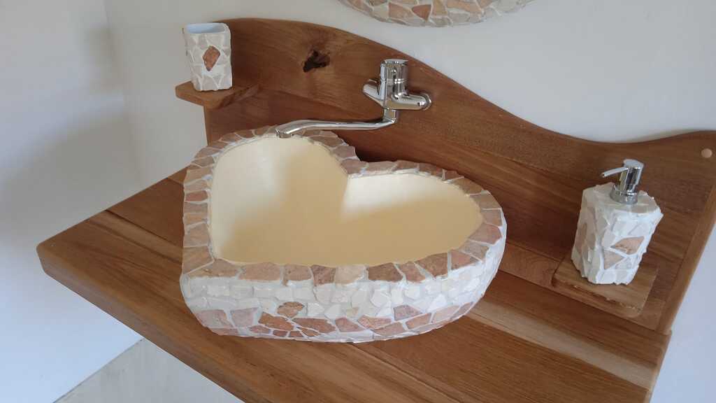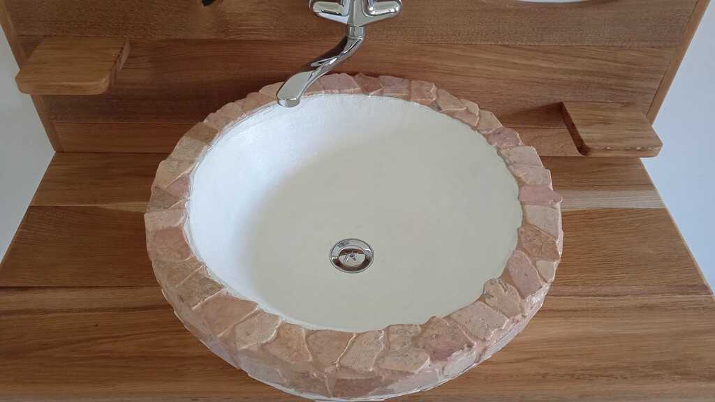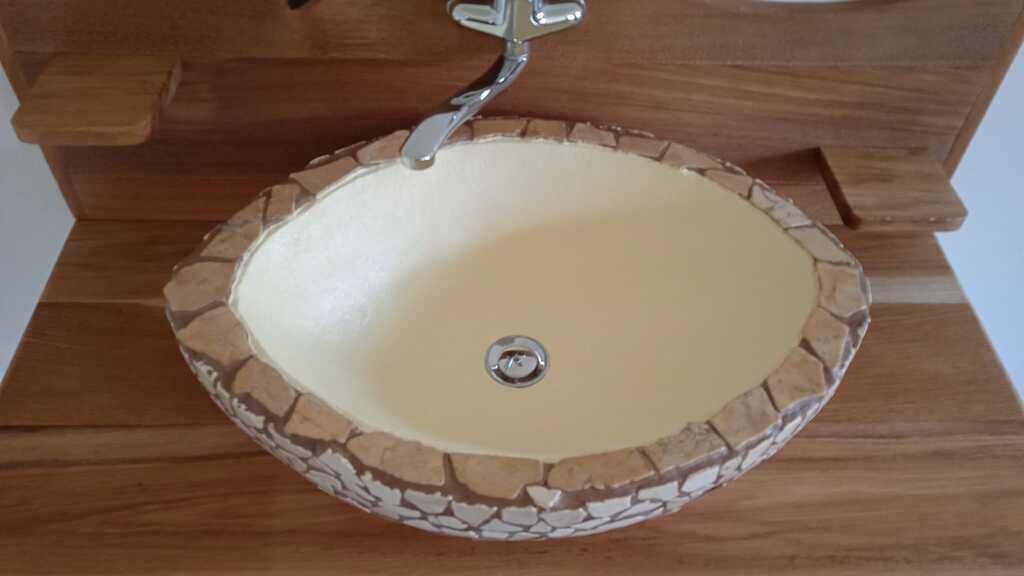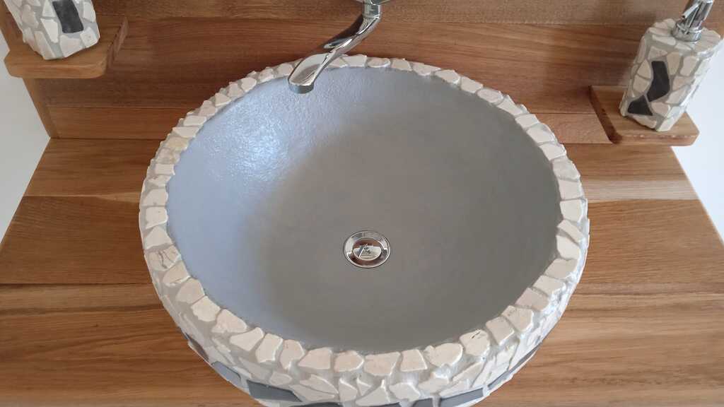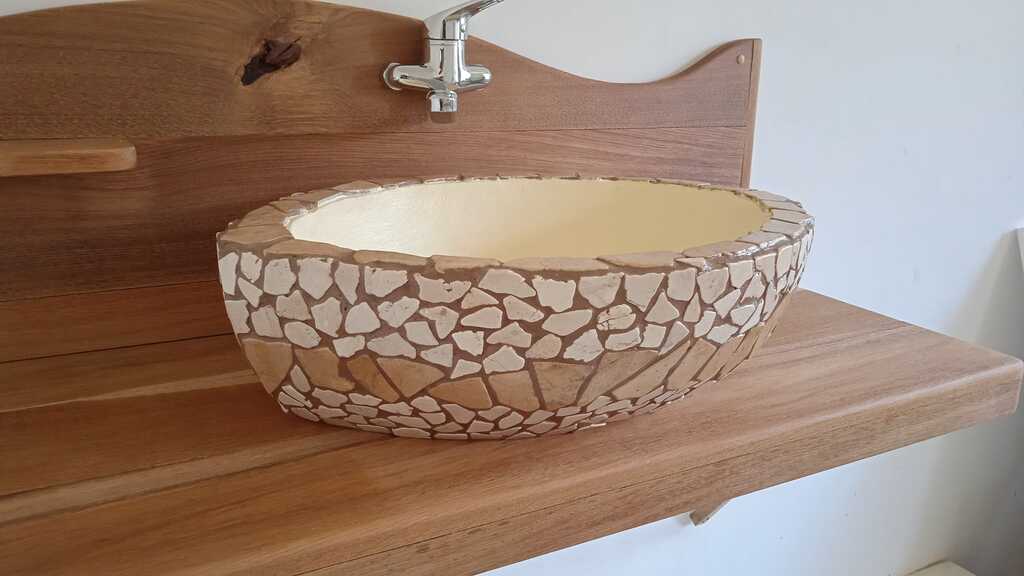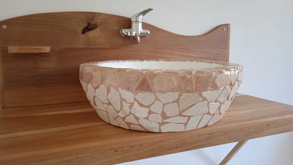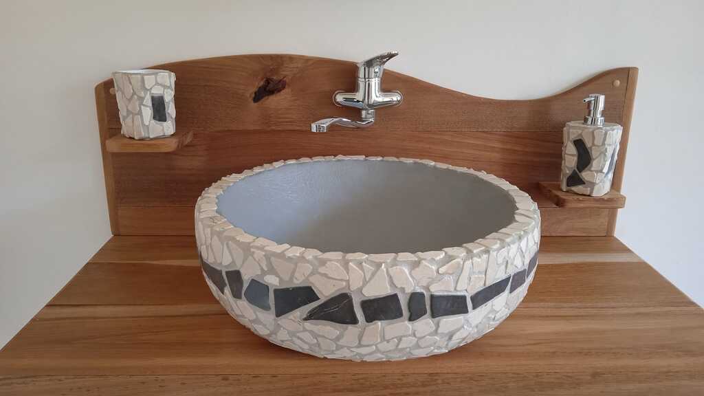 Jedinečnost: Každé umyvadlo je originál, díky ručnímu zpracování a unikátnímu uspořádání mozaiky.